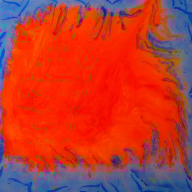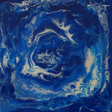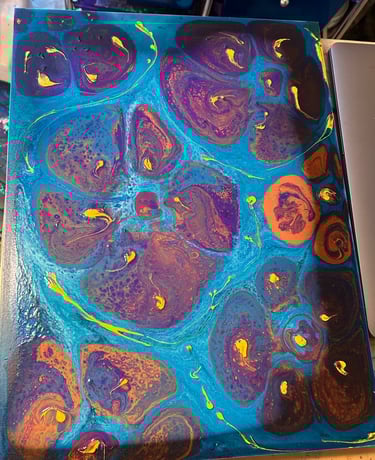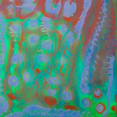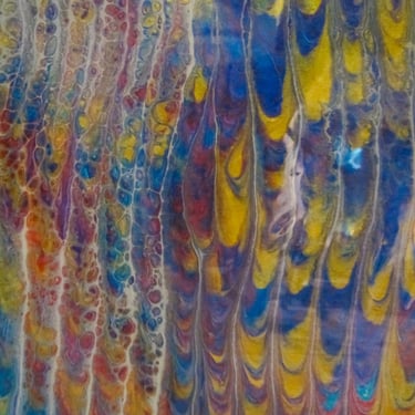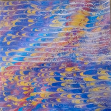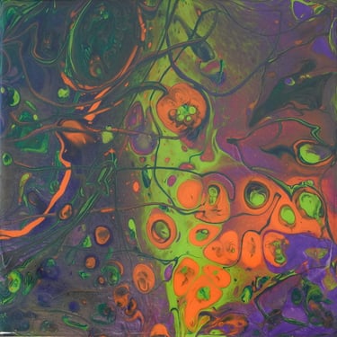 These two 12"x12" pieces are entitled "Purple Haze 1 and 2". The final result of the unconstrained pour of bright orange, purple, green and blue reminded me entirely of the psychedelic sounds of the legendary Jimi Hendrix.