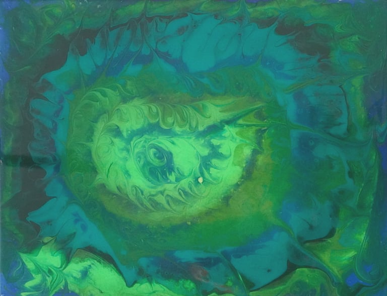 "Wall Flower", "Oceans", Fluid acrylic on glass. (~11"x14")
